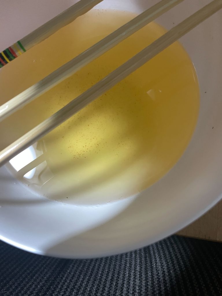 液体が取れました。(あっ下に結構カスがありますね!ほんとだ!何回か濾さないと取れないんだ!まあ今後も1回しか濾さないけど!)