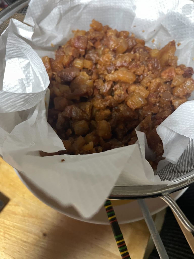 ちょっと面白かったので買ってきて、家でダンダン切ってぐつぐつ煮てラードを作って、